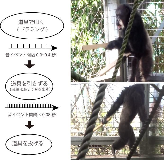 これは、道具の使用を「音としての表現」に展開させる能力がヒトに近い霊長類種にも備わっていることを示すとのことだ。