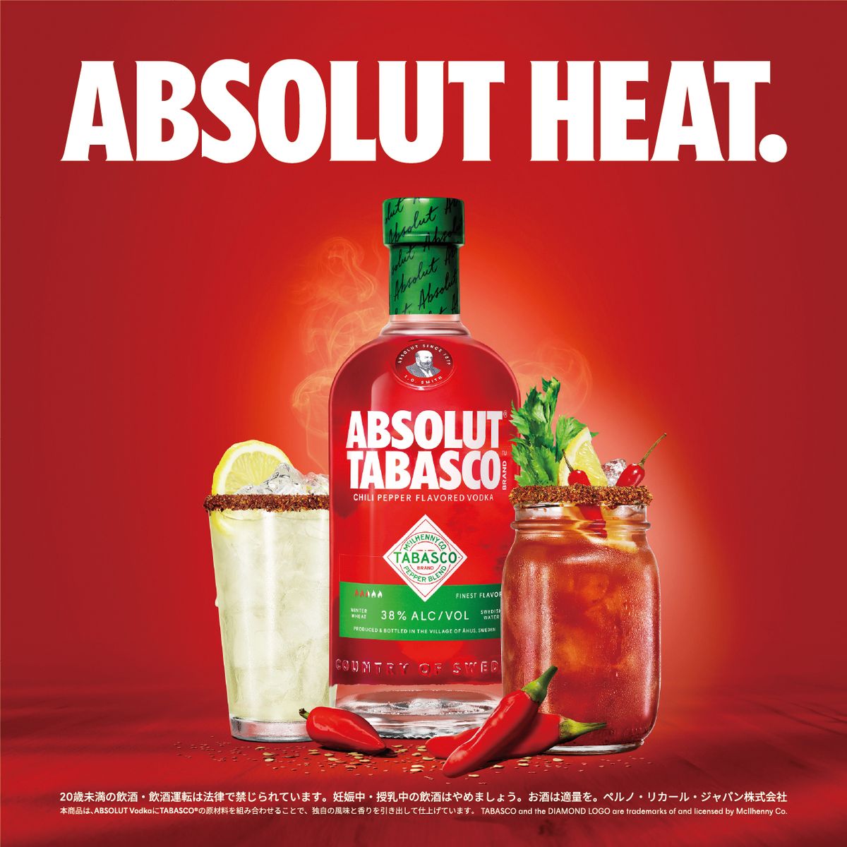 スウェーデンのプレミアムウオッカブランド「ABSOLUT VODKA(アブソルート ウオッカ)」が、世界的な辛味調味料ブランド「TABASCO(タバスコ)」とコラボ。刺激的な辛みを楽しめるスパイシーなフレーバードウオッカ「ABSOLUT TABASCO」が登場した。