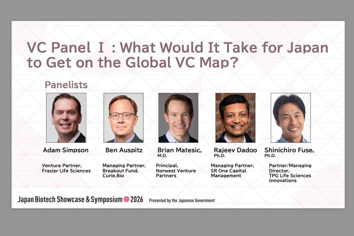 2026年3月25・26日に東京で開催された「Japan Biotech Showcase & Symposium」において、VC Panel Ⅰ「What Would It Take for Japan to Get on the Global VC Map?(日本のバイオテックは世界のVCマップに載れるのか)」と題して、日本のバイオテックが世界のベンチャーキャピタル(VC)の投資対象としてどのように認識され、何が求められているのかをテーマに、米国のトップティアVCが率直な評価と提言を示しました。