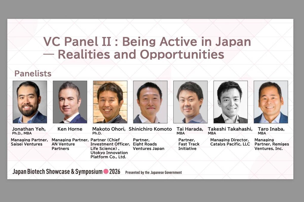 2026年3月26日、都内で開催されたJapan Biotech Showcase & Symposiumにおいて、日本のライフサイエンス・エコシステムの現在地と未来を展望するパネルディスカッション、VC Panel II 「Being Active in Japan — Realities and Opportunities(日本での活動:その現実と好機)」が行われました。