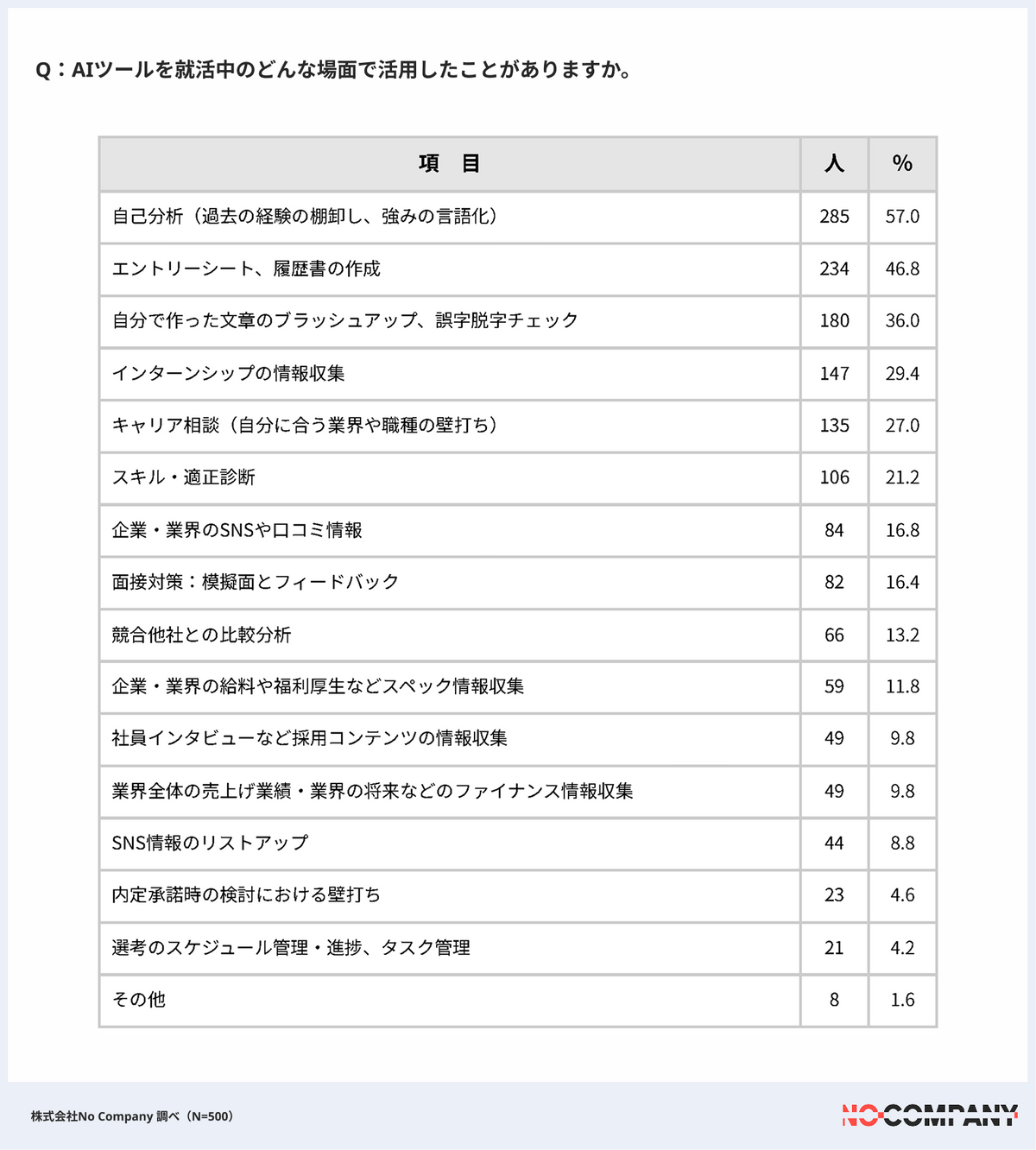 背景にあるのは、企業選びの軸そのものの変化だろう。知名度や条件といったスペックではなく、「自分に合っているか」で選ぼうとすれば、まず自分を知る必要がある。AIはその壁打ち相手になっているのだ。