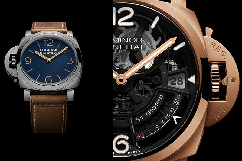 続いて登場するのは、「ルミノール PAM01731」(右)と「ルミノール デストロ PAM01732」(左)の2本。こちらは見てのとおり、過去のアーカイブが着想源となっており、パネライのアイコニックな意匠や機能をベースに現代的な再解釈を加えたタイムピースといえる。