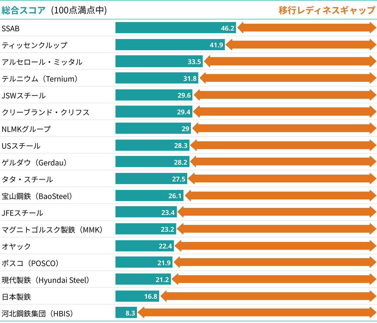 日本を代表する鉄鋼メーカーである日本製鉄とJFEスチールの評価は、極めて厳しいものとなった。総合スコアではJFEスチールが23.4点(18社中12位)、日本製鉄が16.8点(17位)といずれも下位に沈んでいる。