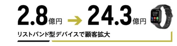 ブレイクスルーポイント|建設業界から「夏場の熱中症対策を解決したい」という声を受け、導電性繊維を活用したリストバンド型ウェアラブルデバイス「hamon」を開発し、製品へと昇華させたことが成長の起点となった。従来のBtoB向け素材供給ビジネスから、自社ブランドの最終製品を持つ企業へと大きく変貌。「着る」から「巻く」への転換で導入ハードルが下がり、売上は6年で約8.6倍に成長。16億円の赤字から2.4億円の黒字化も達成した。