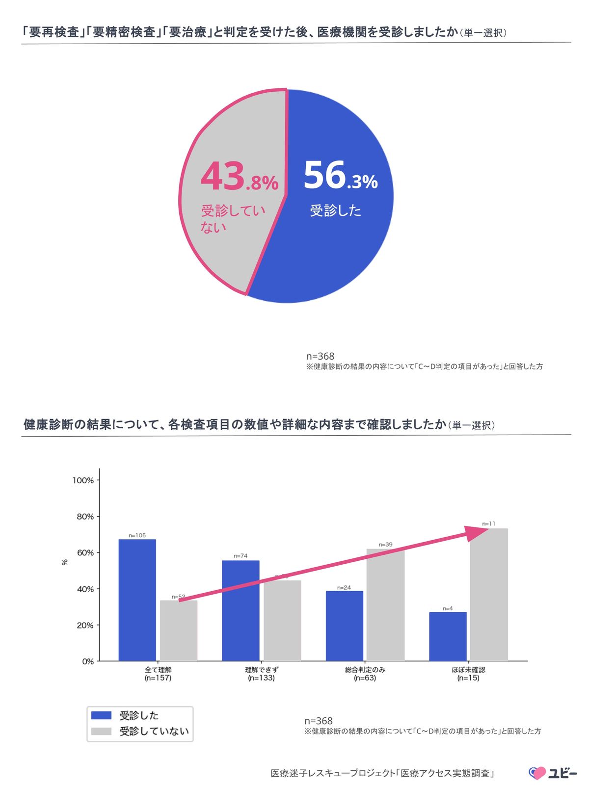 それによると、健康診断で要再検査や要精密検査、要治療を意味する「C〜D判定」を受けた人のうち、実に43.8%が医療機関を受診していないという。