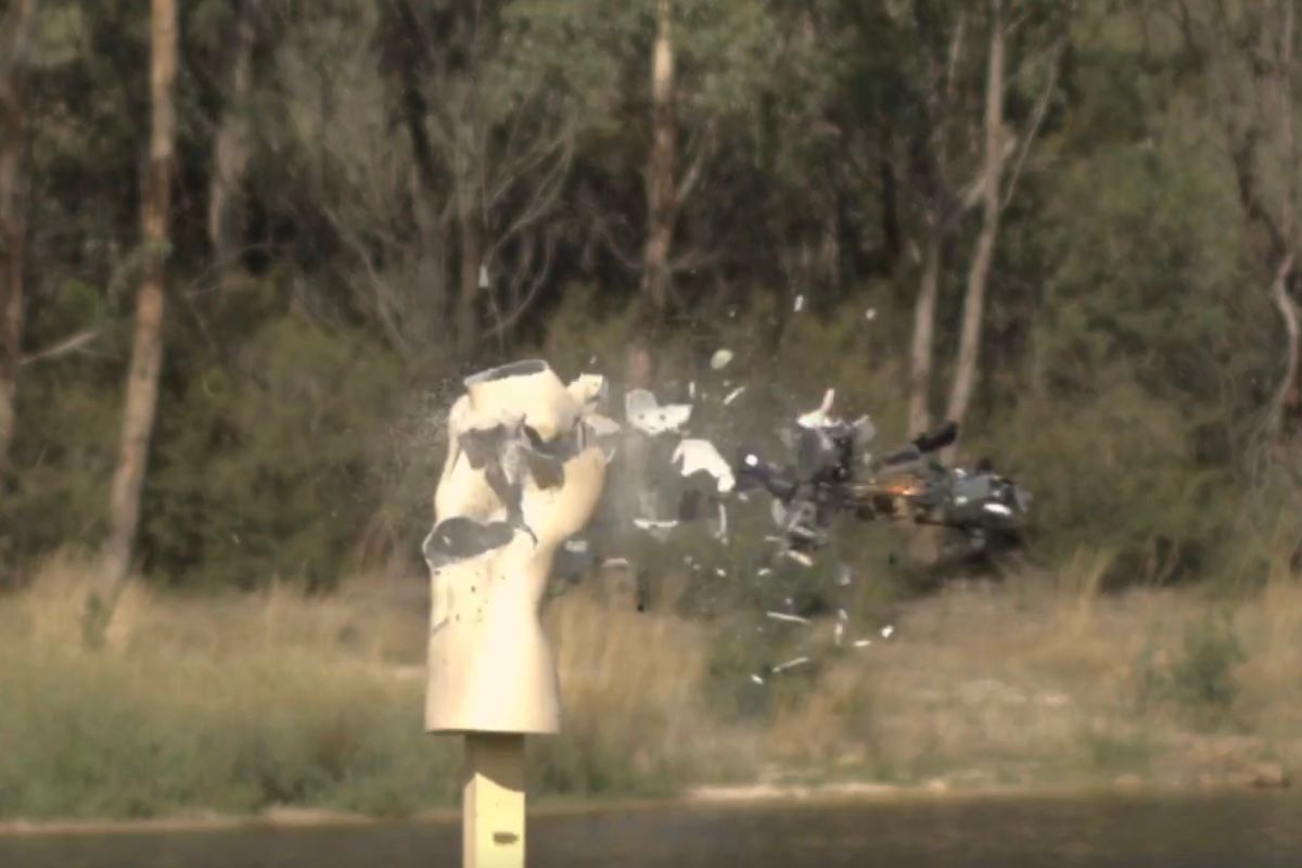オンラインで最近共有されたある動画には、弾頭を搭載していない高速の攻撃ドローン(無人機)が、鋭い刃で人形(ひとがた)の標的を撃ち抜く様子が映っている。動画を投稿した英シャドーブレイク・インターナショナル(ShadowBreak Intl)社のサミュエル・カルディロ最高経営責任者(CEO)はこれを「フライングソード(空飛ぶ剣)」と呼び、時速450kmで攻撃すると説明している。