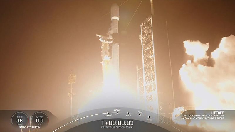 日本のispaceの月着陸機「レジリエンス」は、米国の月着陸機「ブルーゴースト」とともにスペースXのファルコン9によって打ち上げられた(c)SpaceX