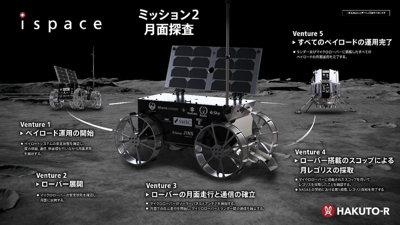 マイクロローバー「テネシアス」によるミッションは「ベンチャー」と呼称され、その行程は5段階に区分される(c)ispace