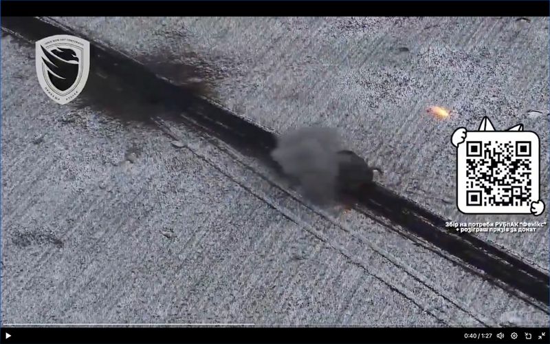 ウクライナ国境警備隊の攻撃ドローン部隊「フェニックス」のドローンがロシア軍の戦車に群がり攻撃し、破壊(Xのスクリーンショット)