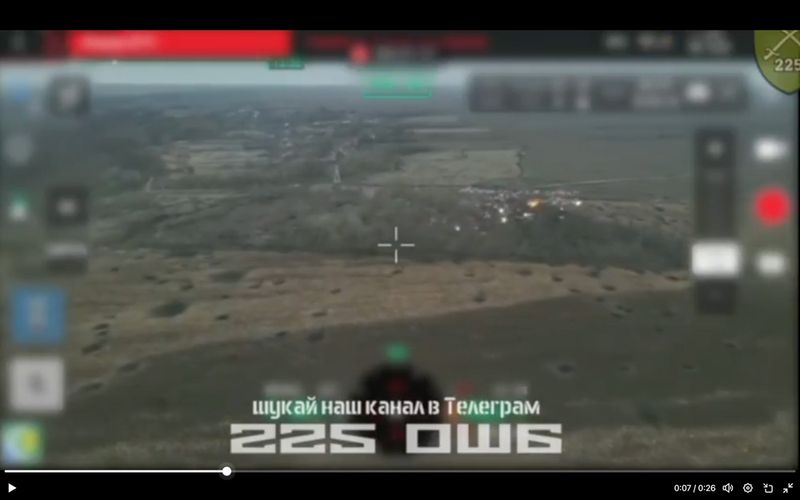 ウクライナ軍の高機動ロケット砲システムから発射されたM30ロケット弾が炸裂。擲弾ほどの大きさの子弾が雨あられとロシア軍が潜む樹林帯に降り注いだ(Xのスクリーンショット)