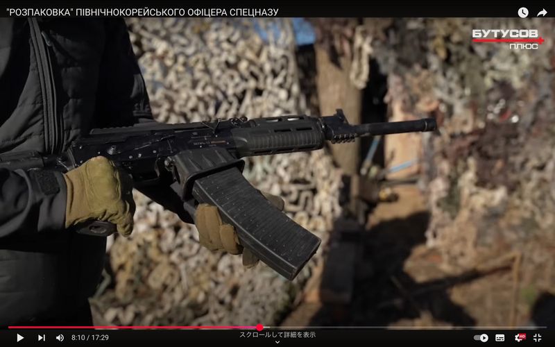 戦死した北朝鮮軍中隊長が身につけていた装備一式(YouTubeのスクリーンショット)