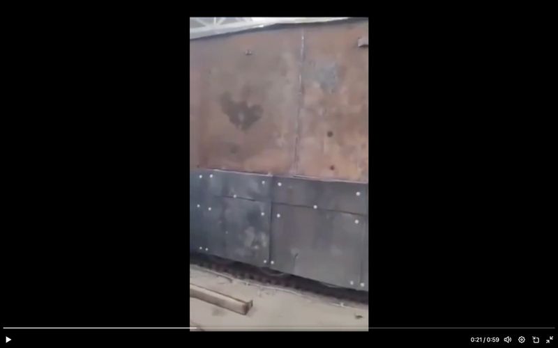 古い戦車をベースに金属板や丸太で防護を強化、ドローンによるたび重なる攻撃に耐えたというロシア軍の「丸太戦車」(Xのスクリーンショット)