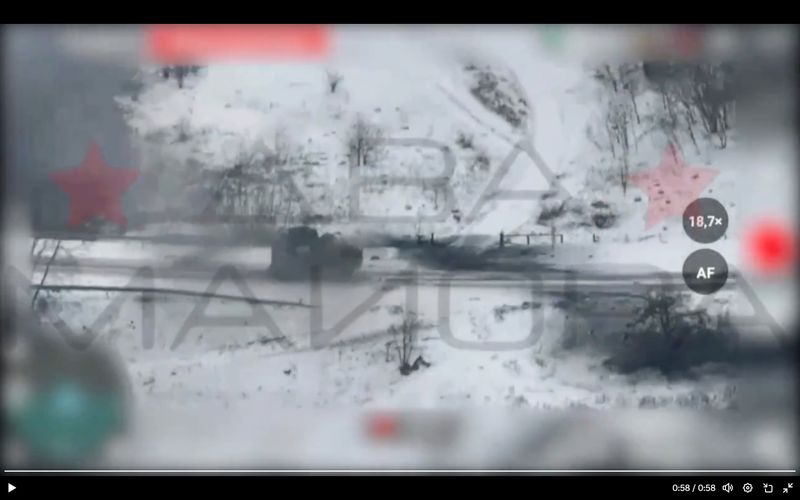間隔を広めにとって長い縦隊を組み、幹線道路を進むウクライナ軍の耐地雷トラックなどの車両(Xのスクリーンショット)