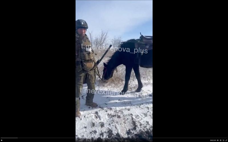 ロシア軍が補給に活用するロバや馬(Xのスクリーンショット)
