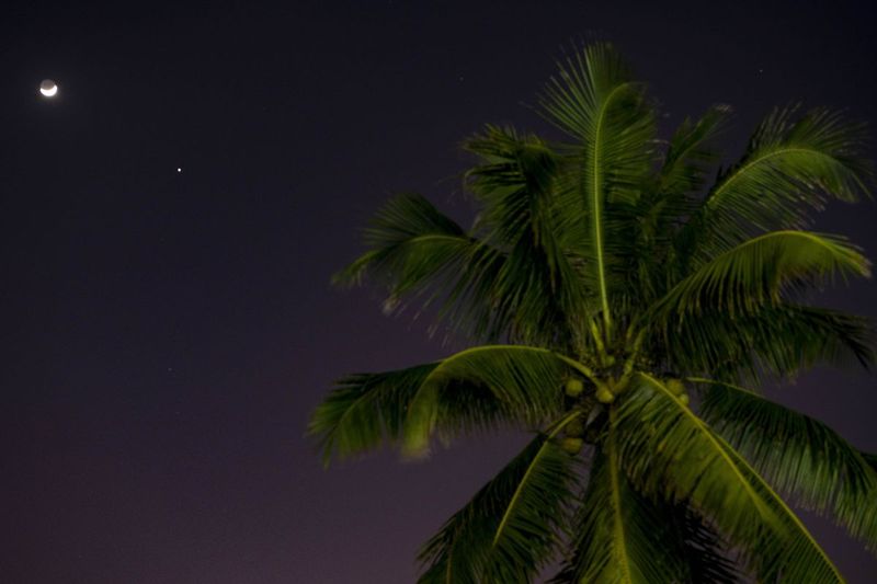 月と木星の接近。中国海南省の瓊海市にて2022年1月6日撮影(Meng Zhongde/VCG via Getty Images)