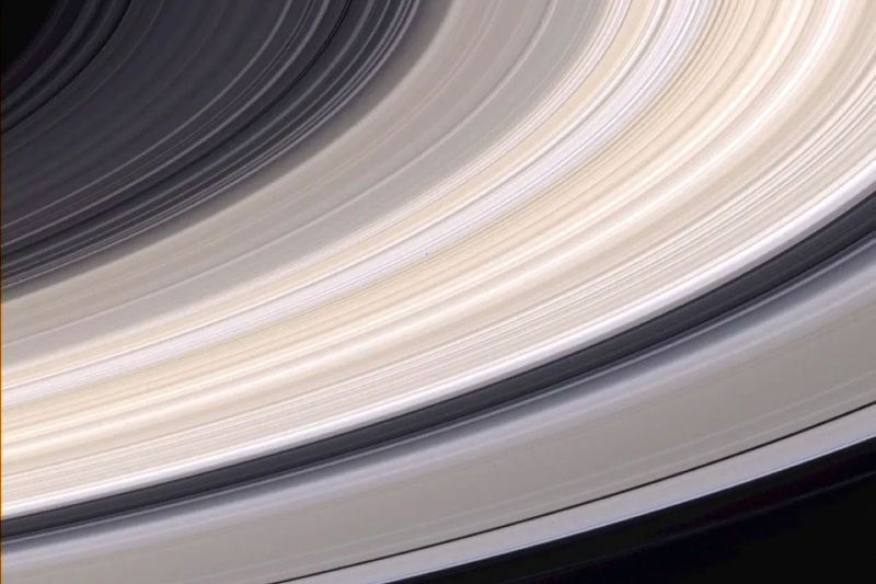 土星の環の拡大画像。細い環が無数に集まって円盤状の大きな環を構成していることがわかる(NASA)