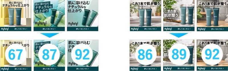 HDYONE AI PACKの一部として提供されるCTR事前予測ツールも機能として持つ「CREATIVE BLOOM DISPLAY Ads」。媒体別およびCTRorIMP双方の事前予測をクリエイティブ素材ごとに偏差値として数値化できる