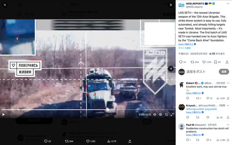 ウクライナ軍のアゾフ旅団が使い始めた新型ドローン「SETH(セス)」(Xのスクリーンショット)