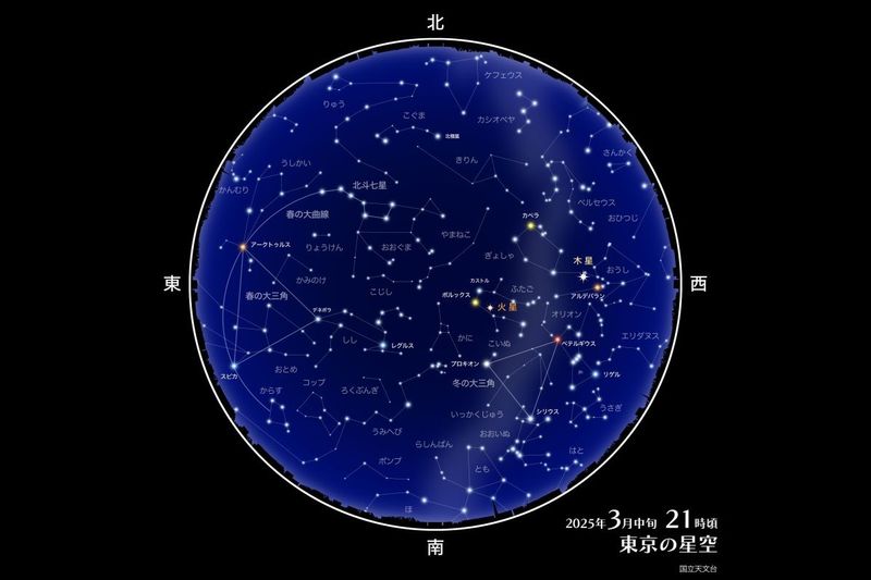 2025年3月中旬(午後9時ごろ)の東京の星空(国立天文台)