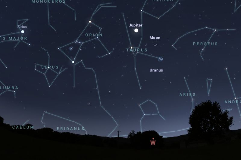 2025年4月2日(東京:19時ごろ)の西の空(Stellarium)
