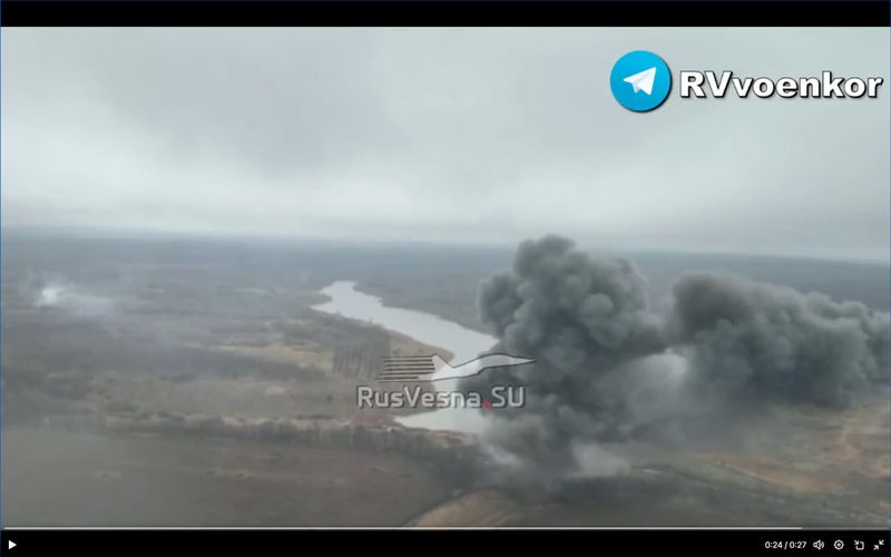 ロシア西部ベルゴロド州で、ロシア空軍機がウクライナ軍の陣地付近のダムを攻撃(Xのスクリーンショット)