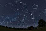 イタリア・ピサにあるサン・ジョバンニ洗礼堂のドーム屋根の上に立つ聖ヨハネの像の背後に昇る4月の満月「ピンクムーン」。2023年4月5日撮影(Lorenzo Di Cola/NurPhoto via Getty Images)