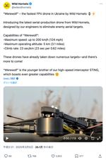 【画像】ウクライナ軍の第2世代の迎撃ドローン「ペレベルテニ(人狼、Werewolf)」。同国の非営利のドローンメーカー、ワイルド・ホーネッツが開発(Xのスクリーンショット)