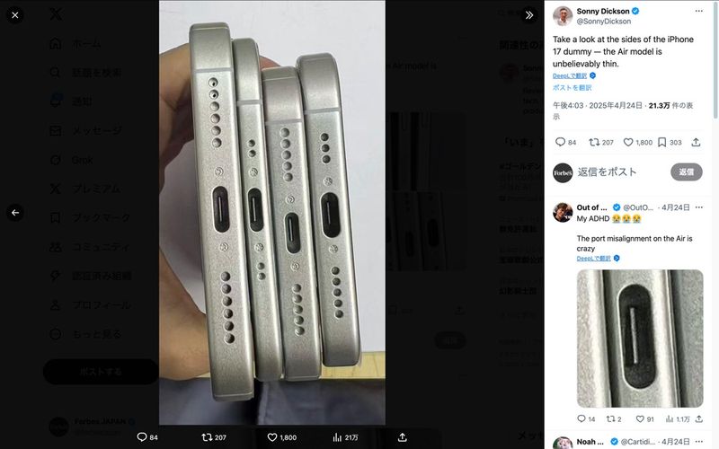 次世代iPhone 17シリーズとされる4つのダミー(Xのスクリーンショット)