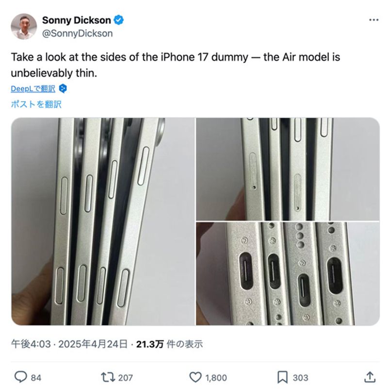 次世代iPhone 17シリーズとされる4つのダミー(Xのスクリーンショット)