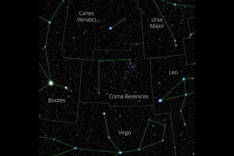 かみのけ座の位置関係を示した写真(E. Slawik/NOIRLab/NSF/AURA/M. Zamani)