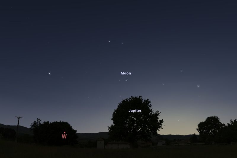 2025年5月29日(東京:午後19時35分ごろ)の西の空(Stellarium)