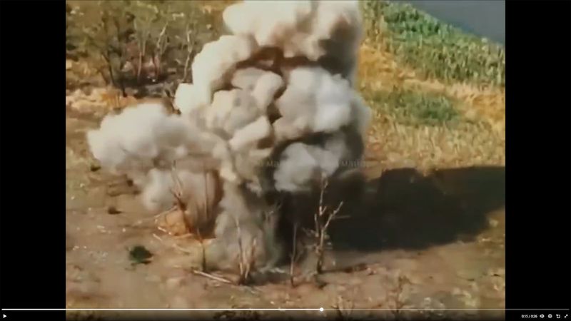 ソーシャルメディアで2日に共有された動画には、2輪のホバーボード2台を連結し、真ん中に対戦車地雷を載せた自爆型の無人ロボット数台が、ウクライナ軍の防御陣地とされる場所を爆破する様子が映っている(Xのスクリーンショット)