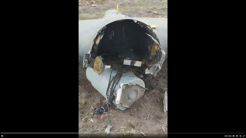 通常の高性能炸薬よりも建物の破壊で大きな威力を発揮するサーモバリック弾頭を搭載した、シャヘド型攻撃ドローン(無人機)(Xのスクリーンショット)