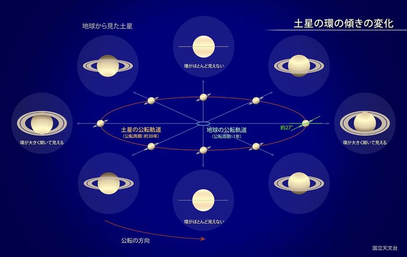 土星の環の傾きの変化(国立天文台)