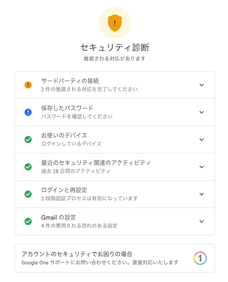 セキュリティ診断画面(Google)