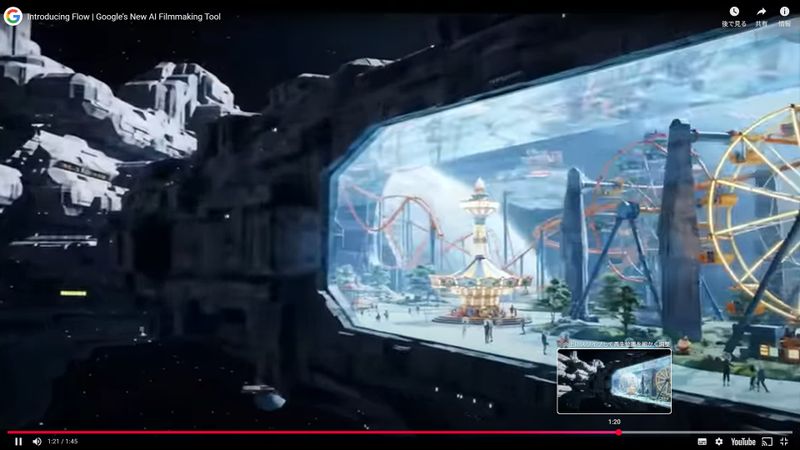 動画生成モデルVeo 3と画像生成モデルImagen 4、Geminiを統合したAI映像制作ツールとして、Flowが登場。米国のGoogle AI ProおよびUltraプランユーザー向けに提供を開始した(YouTubeのスクリーンショット)
