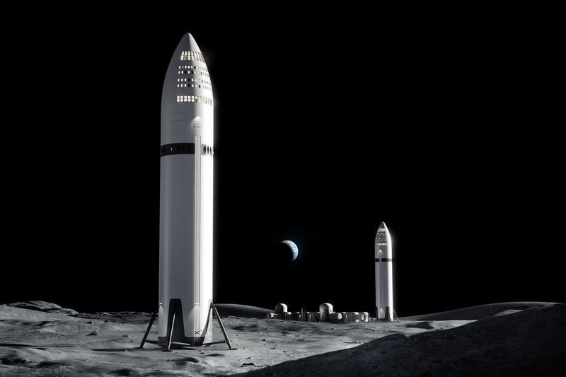 スターシップの月着陸機仕様「スターシップHLS」。「HLS」とはヒューマン・ランディング・システムの略称(c)SpaceX