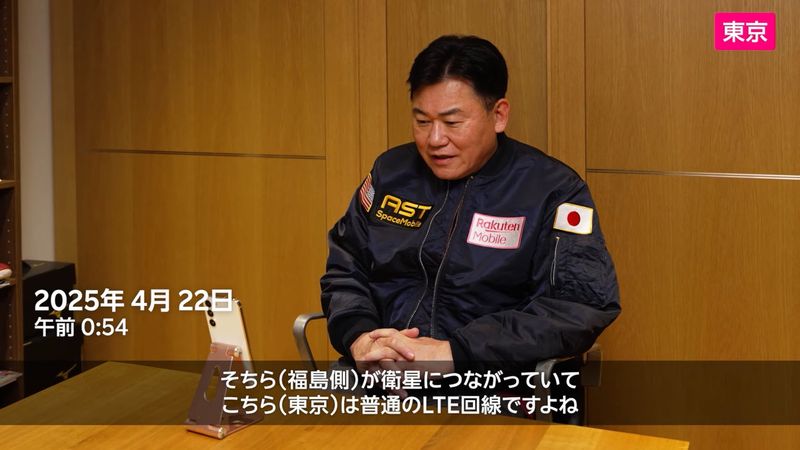 楽天モバイルとASTスペースモバイルは2025年4月、日本国内で初めて、低軌道衛星と市販スマートフォン同士のエンドツーエンドでの直接通信によるビデオ通話に成功した(YouTubeのスクリーンショット)