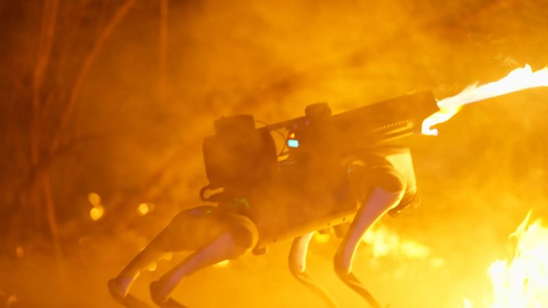 Throwflameという企業が火炎放射器を装備したUnitreeロボットを販売している