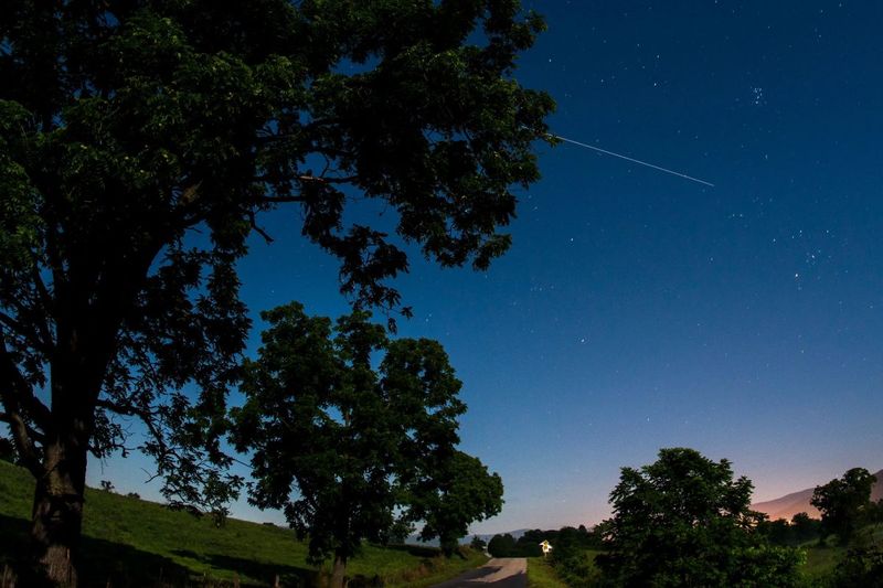 米バージニア州エルクトン上空の横切る国際宇宙ステーション(ISS)。2015年8月1日撮影、30秒露光(NASA/Bill Ingalls)