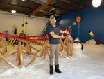 YouTubeコンテンツ『I Built a Roller Coaster In My Lab』撮影の舞台裏。CrunchLabsのスタジオに氷を砕いてつくった雪を敷き詰めて、ローラーコースターもつくった。撮影に使うツールやローラーコースターについても「最新の注意を払い、安全性を確認した上で撮影に臨んでいる」とローバー氏は語っている