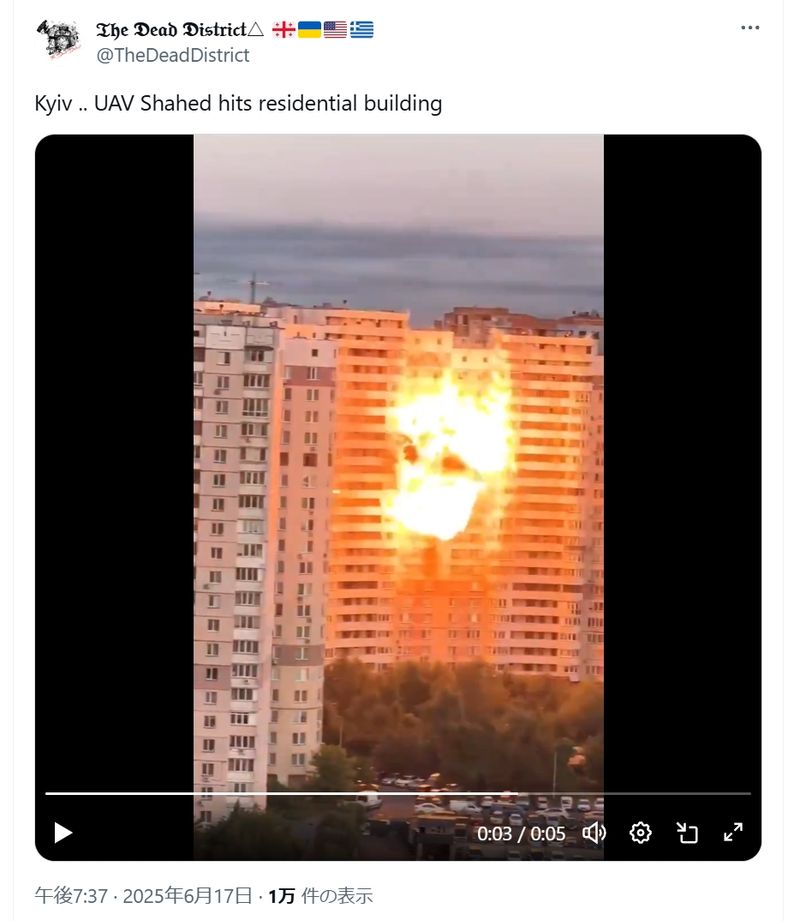 ウクライナではシャヘドによる攻撃と民間人の犠牲が続いている(Xのスクリーンショット)