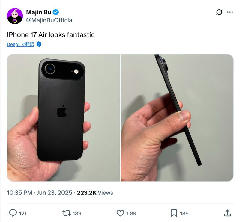 iPhone 17 Airとされる画像(Xのスクリーンショット)