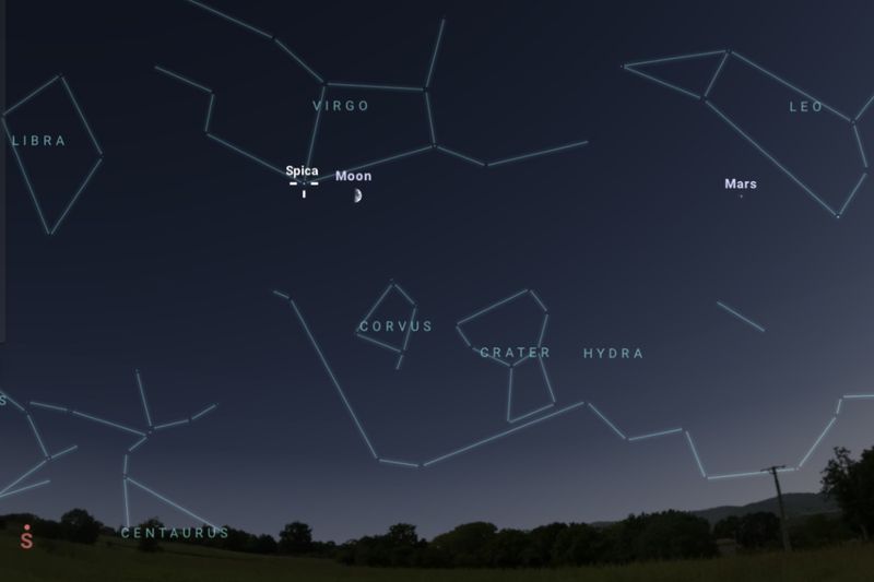 2025年7月3日、日の入り約45分後(東京:午後7時45分ごろ)の南南西の空(Stellarium)