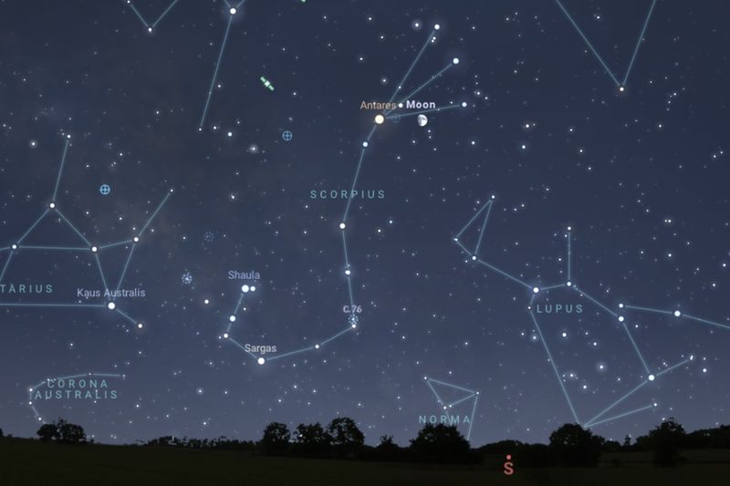2025年7月7日(東京:午後8時半ごろ)の南の空(Stellarium)