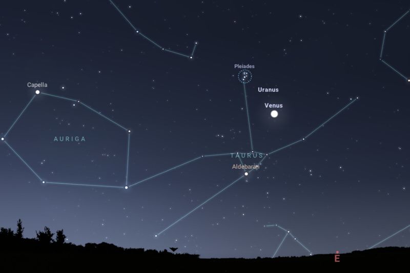 2025年7月6日、日の出約1時間前(東京:午前3時半ごろ)の東の空(Stellarium)