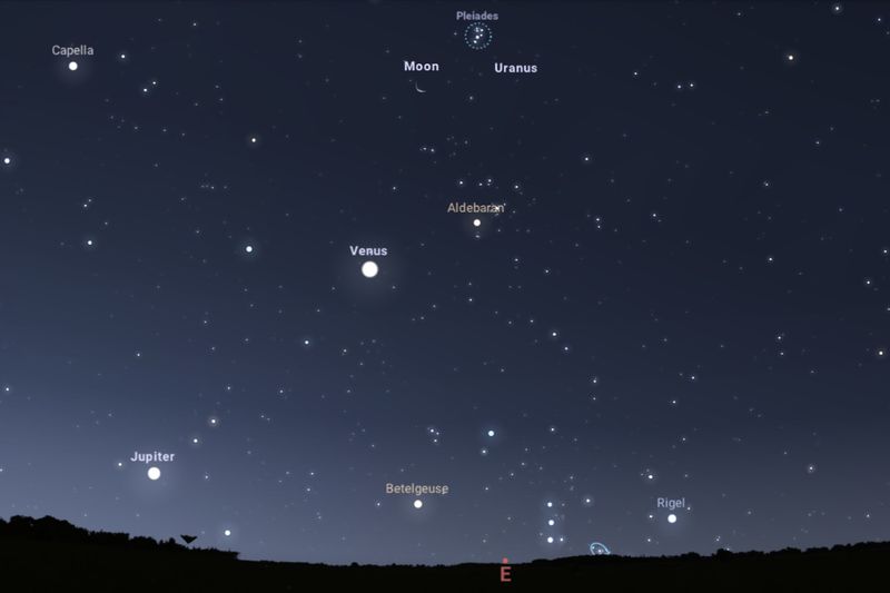 2025年7月21日、日の出約1時間前(東京:午前3時40分ごろ)の東の空(Stellarium)