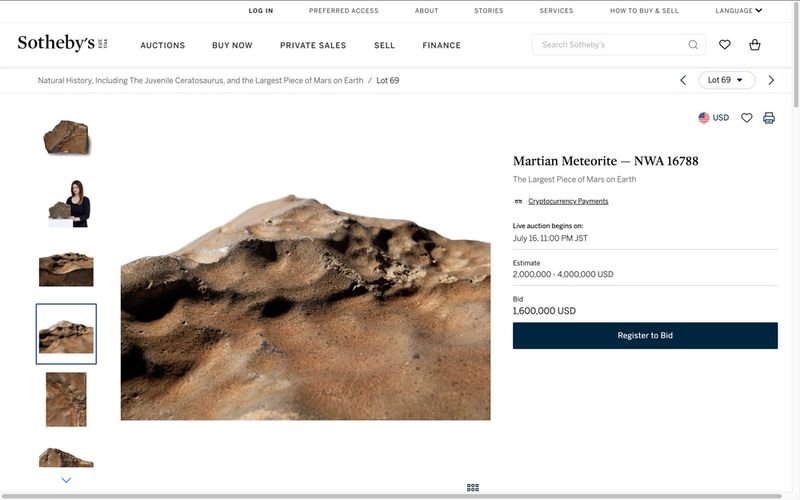 サザビーズのオークションに出品される火星の岩石(スクリーンショット)