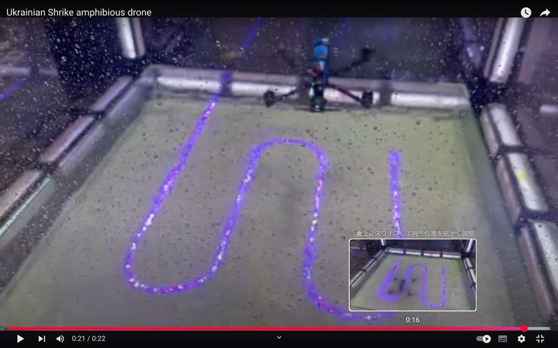 着水して潜水し、再び離水する能力を持つFPVドローン「シュライク」の新型(YouTubeのスクリーンショット)