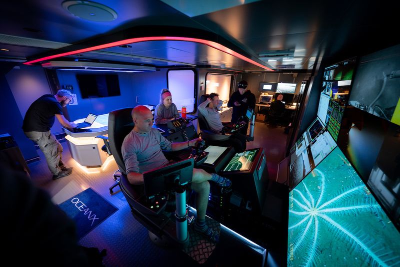 OceanXplorer管制センターは船内におけるオペレーションのハブだ。チームはここから人力潜水艇をナビゲートし、遠隔操作型無人潜水機を操作し、先進の科学的発見やライブ放送のためのリアルタイムマッピング・データを処理する。